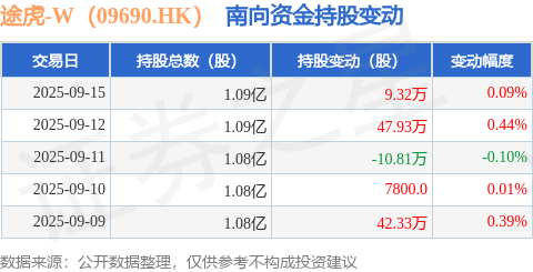 证券之星消息,9月15日南向资金增持9.32万股途虎-W(09690.HK)。近5个交易日中,获南向资金增持的有4天,累计净增持89.55万股。近20个交易日中,获南向资金增持的有16天,累计净增持742.83万股。截至目前,南向资金持有途虎-W(09690.HK)1.09亿股,占公司已发行普通股的13.17%。