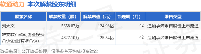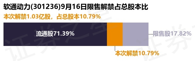 证券之星消息,根据市场公开信息整理,软通动力(301236)于9月16日将有1.03亿股限售股份解禁,为公司追加承诺限售股份上市流通,占公司总股本10.79%。(本次数据根据历史公告整理得出,实际情况以上市公司最新公告为准)本次解禁后,公司还有1.7亿股限售股份,占总股本17.82%。具体如下图所示: