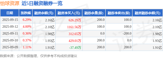 怡球资源融资融券信息显示,融资方面,当日融资买入7924.29万元,融资偿还7298.0万元,融资净买入626.29万元,连续3日净买入累计2100.5万元。融券方面,融券卖出100.0股,融券偿还0.0股,融券余量200.0股,融券余额0.06万元。融资融券余额2.16亿元。