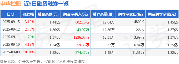 证券之星消息,截至2025年9月15日收盘,申华控股(600653)报收于2.33元,上涨3.1%,换手率6.17%,成交量119.99万手,成交额2.75亿元。