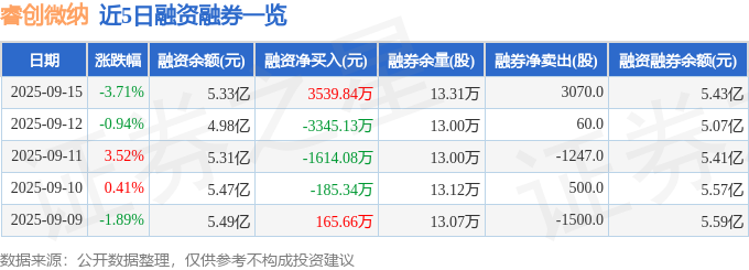 睿创微纳融资融券信息显示,融资方面,当日融资买入6021.33万元,融资偿还2481.49万元,融资净买入3539.84万元。融券方面,融券卖出3510.0股,融券偿还440.0股,融券余量13.31万股,融券余额956.75万元。融资融券余额5.43亿元。