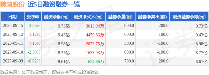 美湖股份融资融券信息显示,融资方面,当日融资买入1.37亿元,融资偿还1.07亿元,融资净买入3013.94万元,连续3日净买入累计9567.56万元。融券方面,融券卖出200.0股,融券偿还0.0股,融券余量800.0股,融券余额3.18万元。融资融券余额9.73亿元。