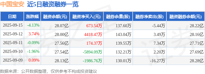 中国宝安融资融券信息显示,融资方面,当日融资买入1.33亿元,融资偿还1.26亿元,融资净买入673.54万元,连续3日净买入累计5266.38万元。融券方面,融券卖出4.49万股,融券偿还9.93万股,融券余量137.6万股,融券余额1501.25万元。融资融券余额28.22亿元。