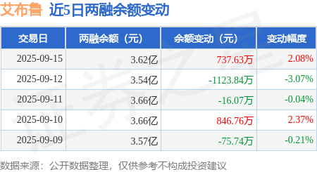 证券之星消息,9月15日,艾布鲁(301259)融资买入2822.9万元,融资偿还2085.27万元,融资净买入737.63万元,融资余额3.62亿元。