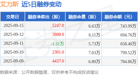 证券之星消息,9月15日,艾力斯(688578)融资买入4566.13万元,融资偿还4056.3万元,融资净买入509.83万元,融资余额8.96亿元,近20个交易日中有13个交易日出现融资净买入。