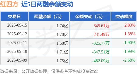 证券之星消息,9月15日,红四方(603395)融资买入1323.36万元,融资偿还977.45万元,融资净买入345.91万元,融资余额1.74亿元,近20个交易日中有11个交易日出现融资净买入。