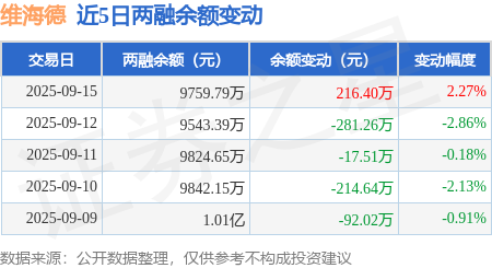 证券之星消息,9月15日,维海德(301318)融资买入542.3万元,融资偿还325.9万元,融资净买入216.4万元,融资余额9759.79万元。