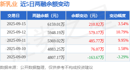 证券之星消息,9月15日,新乳业(002946)融资买入902.58万元,融资偿还693.52万元,融资净买入209.06万元,融资余额6129.32万元,近3个交易日已连续净买入累计1284.84万元。