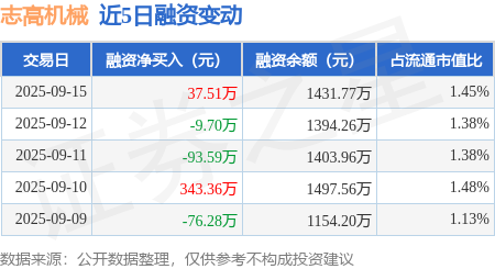 证券之星消息,9月15日,志高机械(920101)融资买入96.07万元,融资偿还58.56万元,融资净买入37.51万元,融资余额1431.77万元。