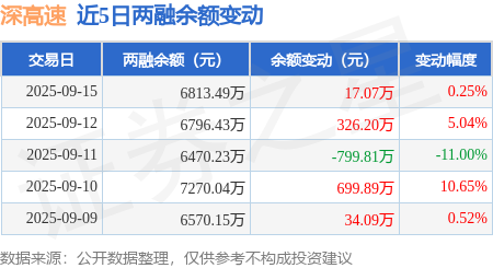 证券之星消息,9月15日,深高速(600548)融资买入387.99万元,融资偿还370.27万元,融资净买入17.72万元,融资余额6763.34万元,近20个交易日中有12个交易日出现融资净买入。