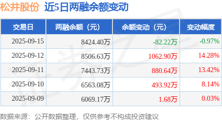 证券之星消息,9月15日,松井股份(688157)融资买入773.78万元,融资偿还856.0万元,融资净卖出82.22万元,融资余额8424.4万元。