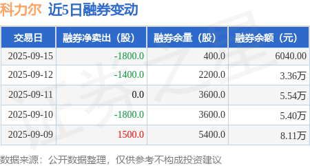 证券之星消息,9月15日,科力尔(002892)融资买入2945.88万元,融资偿还4757.57万元,融资净卖出1811.69万元,融资余额3.09亿元。