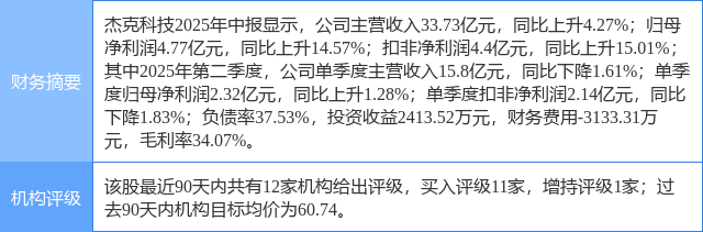 今日杰克科技(603337)涨7.23%,收盘报50.4元。