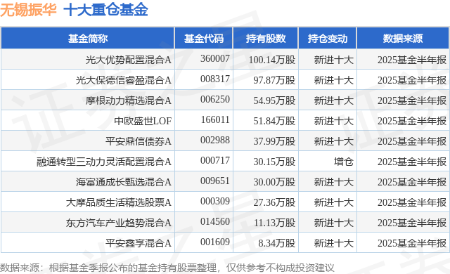 根据2025基金半年报公募基金重仓股数据,重仓该股的公募基金共16家,其中持有数量最多的公募基金为光大保德信基金的光大优势配置混合A。光大优势配置混合A目前规模为6.38亿元,最新净值0.7229(9月15日),较上一交易日上涨1.79%,近一年上涨29.11%。该公募基金现任基金经理为林晓凤。林晓凤在任的基金产品包括:光大保德信国企改革股票A,管理时间为2020年10月24日至今,期间收益率为-24.58%;光大高端装备混合A,管理时间为2023年12月30日至今,期间收益率为24.19%;光大保德信睿盈混合A,管理时间为2024年9月14日至今,期间收益率为33.81%。