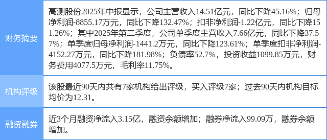 2025年9月2日,东吴证券研究员周尔双,李文意发布了对高测股份的研报《2025年中报点评:Q2业绩环比改善,主业业绩修复&机器人业务打开第二成长曲线》,该研报对高测股份给出“买入”评级。证券之星数据中心根据近三年发布的研报数据计算,该研报作者对此股的盈利预测准确度为43.67%。