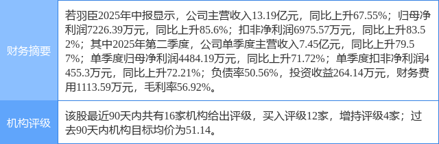 2025年8月20日,东吴证券研究员吴劲草,郗越发布了对若羽臣的研报《2025年半年报点评:自有品牌放量带动业绩高增,多品牌矩阵持续扩充增长可期》,该研报对若羽臣给出“买入”评级。证券之星数据中心根据近三年发布的研报数据计算,该研报作者对此股的盈利预测准确度为78.76%。