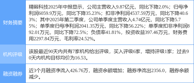 今日精锻科技(300258)涨12.50%,收盘报17.37元。
