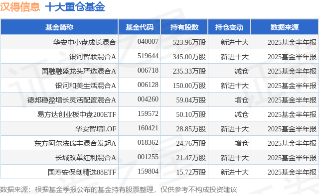 根据2025基金半年报公募基金重仓股数据,重仓该股的公募基金共21家,其中持有数量最多的公募基金为华安基金的华安中小盘成长混合。华安中小盘成长混合目前规模为18.5亿元,最新净值2.9982(9月15日),较上一交易日下跌0.6%,近一年上涨39.65%。该公募基金现任基金经理为金拓。金拓在任的基金产品包括:华安智增精选混合,管理时间为2023年10月23日至今,期间收益率为15.42%;华安景气回报混合发起式A,管理时间为2024年9月19日至今,期间收益率为17.57%;