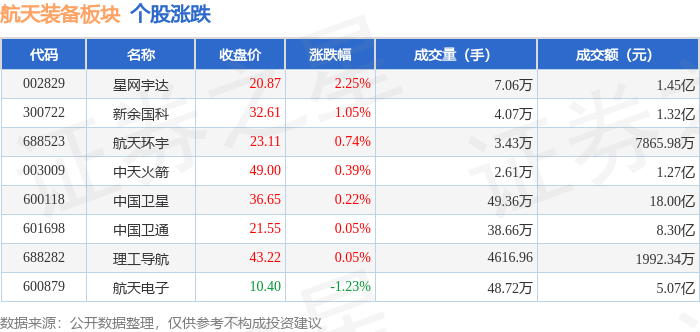 从资金流向上来看,当日航天装备板块主力资金净流出4.33亿元,游资资金净流入2371.85万元,散户资金净流入4.09亿元。航天装备板块个股资金流向见下表: