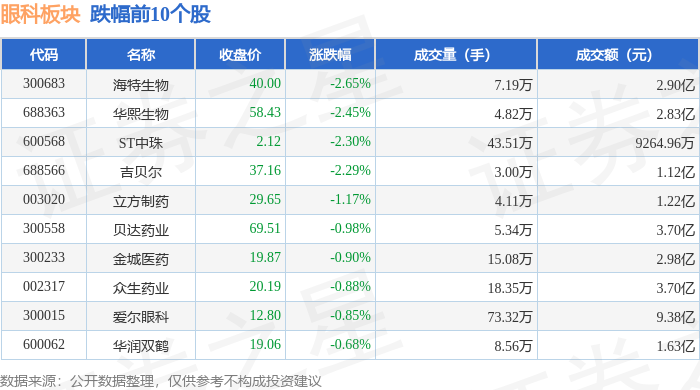 证券之星消息,9月16日眼科板块较上一交易日上涨0.1%,仁和药业领涨。当日上证指数报收于3861.87,上涨0.04%。深证成指报收于13063.97,上涨0.45%。眼科板块个股涨跌见下表: