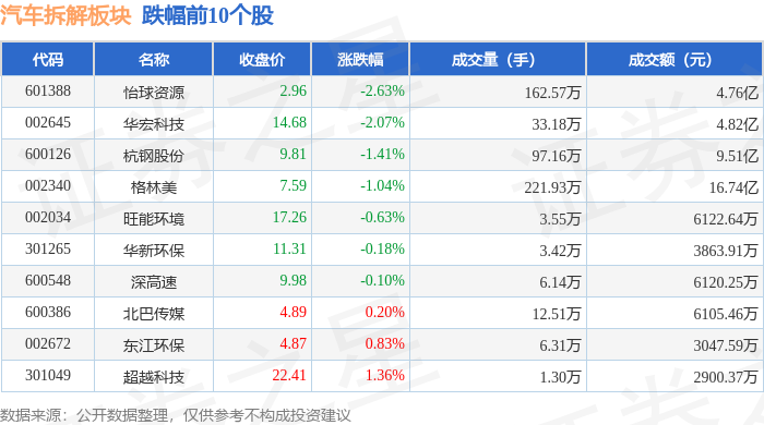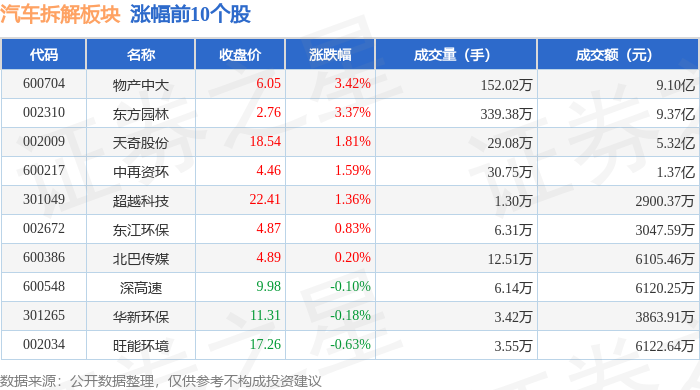 从资金流向上来看,当日汽车拆解板块主力资金净流出3.64亿元,游资资金净流入4118.12万元,散户资金净流入3.23亿元。汽车拆解板块个股资金流向见下表: