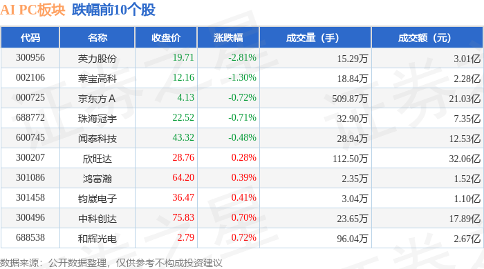 从资金流向上来看,当日AI PC板块主力资金净流入9.36亿元,游资资金净流出7.42亿元,散户资金净流出1.94亿元。AI PC板块个股资金流向见下表: