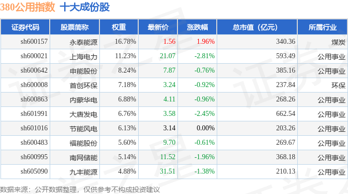 380公用(000113)指数十大成份股详情如下: