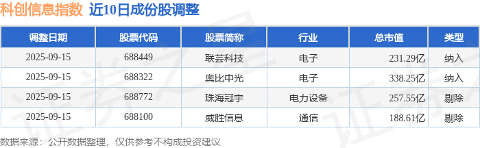 近10日内科创信息(000682)指数成份股做了调整,新纳入了2只股票,剔除了2只股票。