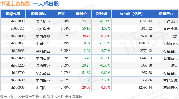 中证上游(000961)指数十大成份股详情如下:
