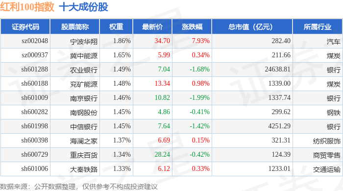 红利100(399411)指数十大成份股详情如下: