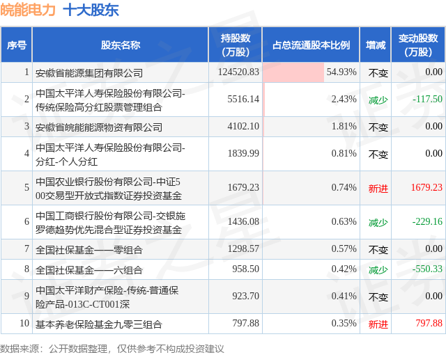 根据皖能电力2025年中报公布的十大股东详情如下:
