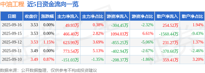 证券之星消息,截至2025年9月16日收盘,中油工程(600339)报收于3.53元,上涨0.0%,换手率0.67%,成交量37.3万手,成交额1.31亿元。