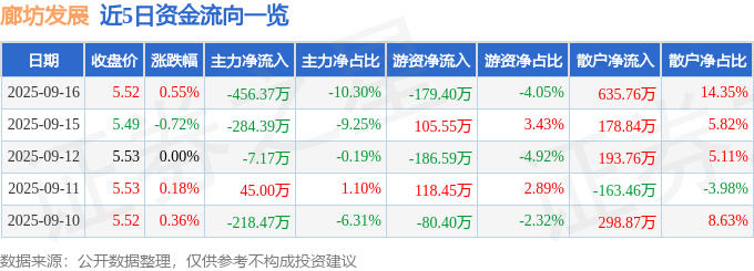 9月16日的资金流向数据方面,主力资金净流出456.37万元,占总成交额10.3%,游资资金净流出179.4万元,占总成交额4.05%,散户资金净流入635.76万元,占总成交额14.35%。