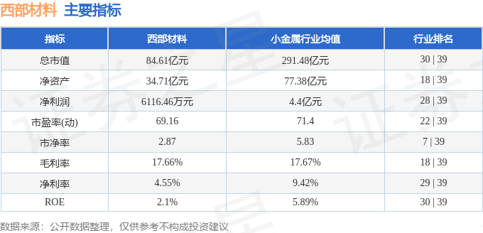 证券之星消息,截至2025年9月16日收盘,西部材料(002149)报收于17.33元,下跌0.8%,换手率3.37%,成交量16.46万手,成交额2.84亿元。