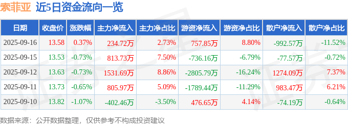 9月16日的资金流向数据方面,主力资金净流入234.72万元,占总成交额2.73%,游资资金净流入757.85万元,占总成交额8.8%,散户资金净流出992.57万元,占总成交额11.52%。
