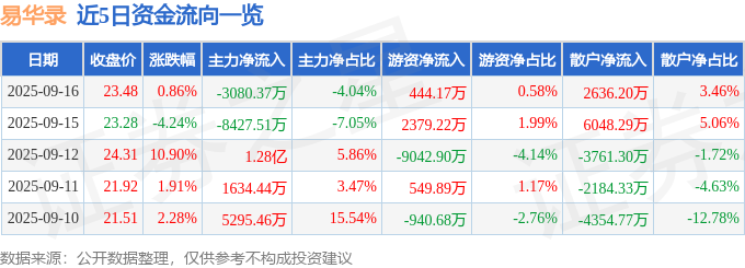 9月16日的资金流向数据方面,主力资金净流出3080.37万元,占总成交额4.04%,游资资金净流入444.17万元,占总成交额0.58%,散户资金净流入2636.2万元,占总成交额3.46%。