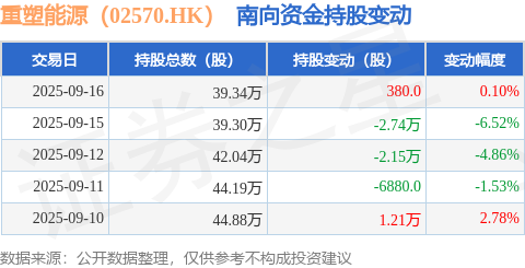 证券之星消息,9月16日南向资金增持380.0股重塑能源(02570.HK)。近5个交易日中,获南向资金减持的有3天,累计净减持4.33万股。近20个交易日中,获南向资金增持的有14天,累计净增持5.91万股。截至目前,南向资金持有重塑能源(02570.HK)39.34万股,占公司已发行普通股的0.96%。