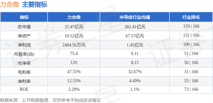 力合微2025年中报显示,公司主营收入1.98亿元,同比下降24.74%;归母净利润2484.56万元,同比下降41.15%;扣非净利润1726.71万元,同比下降55.02%;其中2025年第二季度,公司单季度主营收入1.0亿元,同比下降24.78%;单季度归母净利润1225.25万元,同比下降35.03%;单季度扣非净利润885.85万元,同比下降48.27%;负债率29.43%,投资收益466.11万元,财务费用669.33万元,毛利率47.55%。力合微(688589)主营业务:集成电路、计算机软件和电子信息产品的设计开发及销售(不含限制项目及专营、专控、专卖商品)。