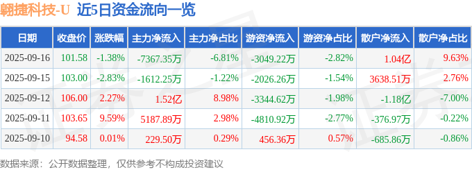 9月16日的资金流向数据方面,主力资金净流出7367.35万元,占总成交额6.81%,游资资金净流出3049.22万元,占总成交额2.82%,散户资金净流入1.04亿元,占总成交额9.63%。