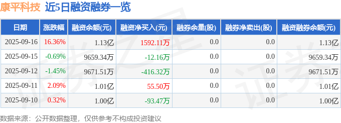 证券之星消息,截至2025年9月16日收盘,康平科技(300907)报收于39.98元,上涨16.36%,换手率11.27%,成交量10.82万手,成交额4.09亿元。