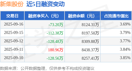 证券之星消息,9月16日,新柴股份(301032)融资买入688.5万元,融资偿还761.7万元,融资净卖出73.2万元,融资余额8124.31万元。