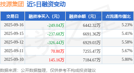 证券之星消息,9月16日,技源集团(603262)融资买入633.5万元,融资偿还882.54万元,融资净卖出249.04万元,融资余额6442.32万元。