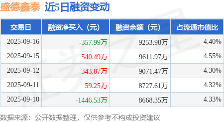证券之星消息,9月16日,盛德鑫泰(300881)融资买入749.41万元,融资偿还1107.4万元,融资净卖出357.99万元,融资余额9253.98万元,近20个交易日中有11个交易日出现融资净买入。