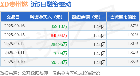 证券之星消息,9月16日,XD贵州燃(600903)融资买入521.37万元,融资偿还880.47万元,融资净卖出359.1万元,融资余额1.49亿元。
