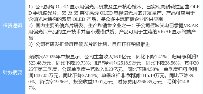 该股为折叠屏,OLED,VR&AR概念热股,当日折叠屏概念上涨3.07%,OLED概念上涨1.9%,VR&AR概念上涨1.67%。