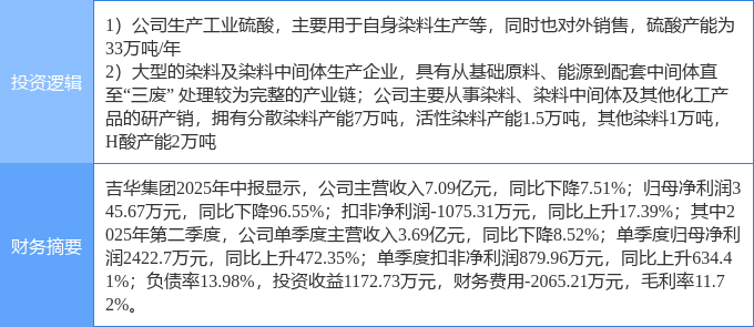 该股为硫酸,染料概念热股,当日硫酸概念上涨0.99%,染料概念上涨0.28%。