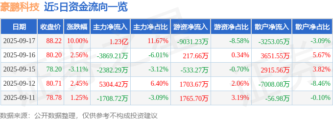 9月17日的资金流向数据方面,主力资金净流入1.23亿元,占总成交额11.67%,游资资金净流出9031.23万元,占总成交额8.58%,散户资金净流出3253.05万元,占总成交额3.09%。