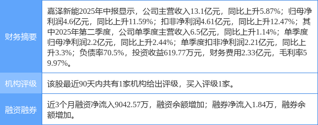 2025年9月3日,华源证券研究员查浩,刘晓宁,邹佩轩,戴映炘,蔡思发布了对嘉泽新能的研报《业绩低于预期 进军绿色甲醇打开成长空间》,该研报对嘉泽新能给出“买入”评级。研报中预计公司2025-2027年归母净利润分别为9.1、10.2、12.2亿元,同比增速分别为44.2%、12.28%、19.48%,当前股价对应的PE分别为10、9、8倍,考虑到公司未来成长性,继续维持“买入”评级。证券之星数据中心根据近三年发布的研报数据计算,该研报作者对此股的盈利预测准确度为67.38%。