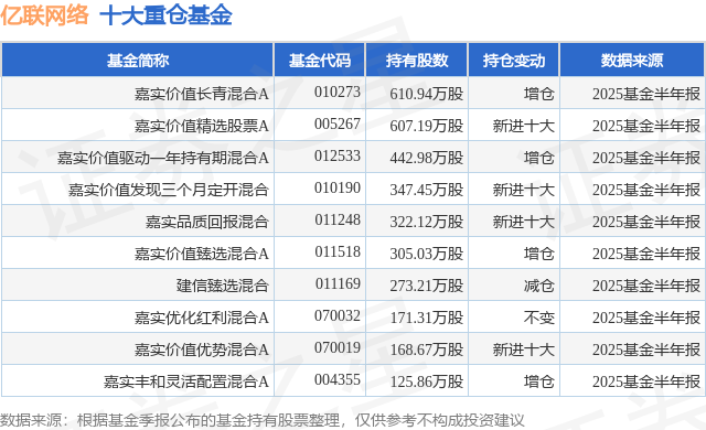 重仓亿联网络的前十大公募基金请见下表:
