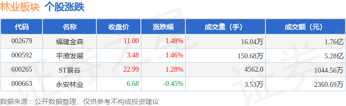 证券之星消息,9月17日林业板块较上一交易日上涨1.15%,福建金森领涨。当日上证指数报收于3876.34,上涨0.37%。深证成指报收于13215.46,上涨1.16%。林业板块个股涨跌见下表: